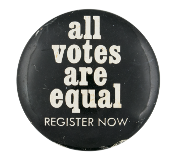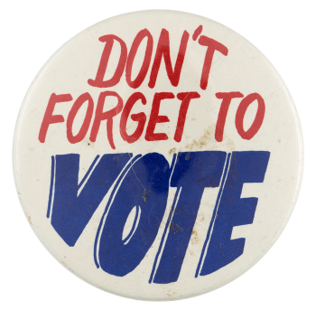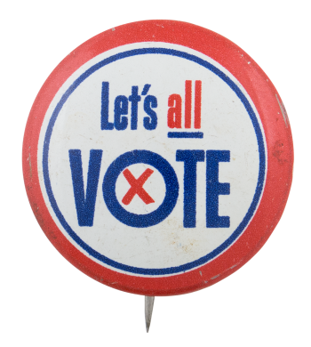 While voting technically began in the US in 1776, it’s been a constant struggle for many populations to be able to actually vote. So many barriers have been put between us and those who are supposed to represent us based on our gender, race, property ownership, literacy, ability, the list goes on. And then there are people who just don’t vote. For these reasons, buttons encouraging people to vote go as early as 1898, just two years after the button was invented!
