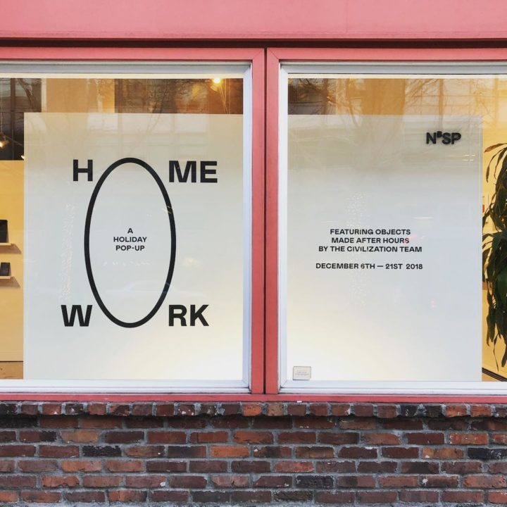 This pop-up features objects our team of nine has created at home, after hours. If you look around the show you’ll see a variety of mediums. Some of us need a break from the computer at the end of the day and like making stuff with our hands. Some of us switch from working in the literal to working in the abstract. Others are community builders and advocates. But no matter what we’re doing, the purpose is roughly the same – what we do after hours is therapeutic, exploratory practice. At work, and after work, the nine of us try to do our part to create the world we want to live in, and devote our time to making the world a bit more beautiful, inclusive, richer and full of life. Because, in the end, there’s no such thing as work/life balance. It’s all just life.